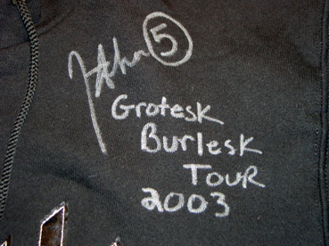 Hoodie, signiert und getragen von John 5 auf der weltweiten "Grotesk Burlesk Tour 2003"
